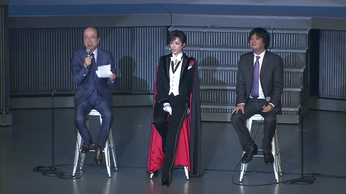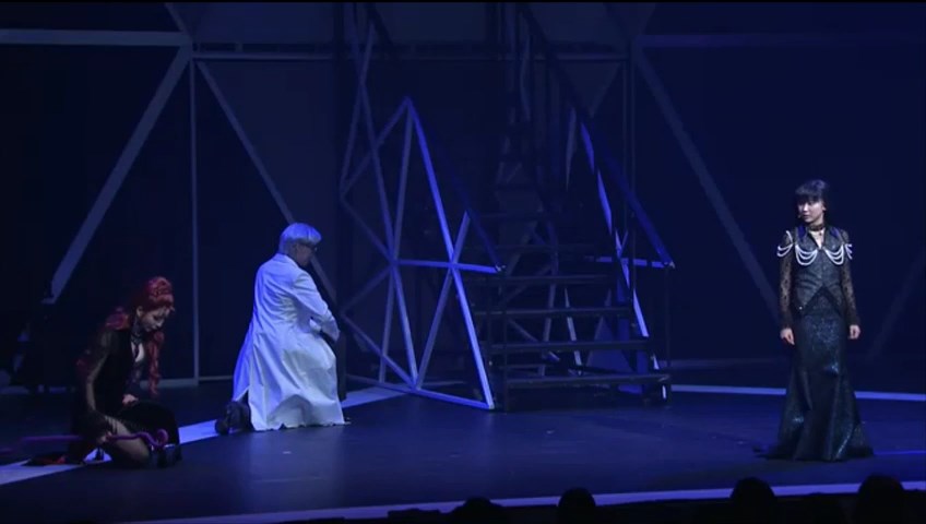 ale po 10 minutach powtarzane są zapowiedzi i informacje, druga część zaczyna się o 1:33:48, po zakończeniu musicalu ponownie pojawiają się Momoiro Clover Z, 2:44:38 - następuje 5 minut przerwy, a potem jest rozmowa z Yamato Yuugą.