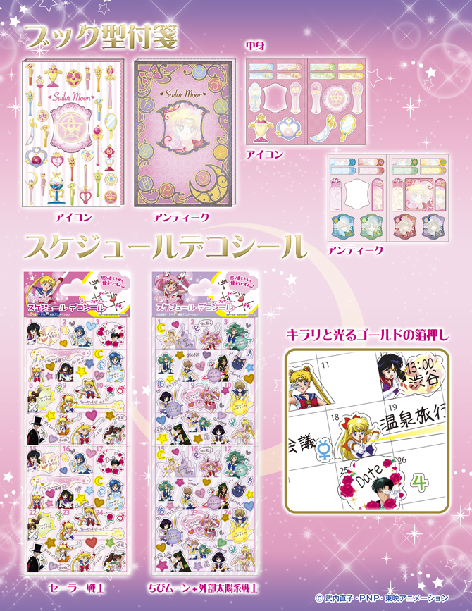 inner, jak i outer senshi. Odklejane karteczki kosztują 580 jenów za zestaw (ok. 18 zł), a naklejki 300 jenów za arkusz (ok. 9 zł).