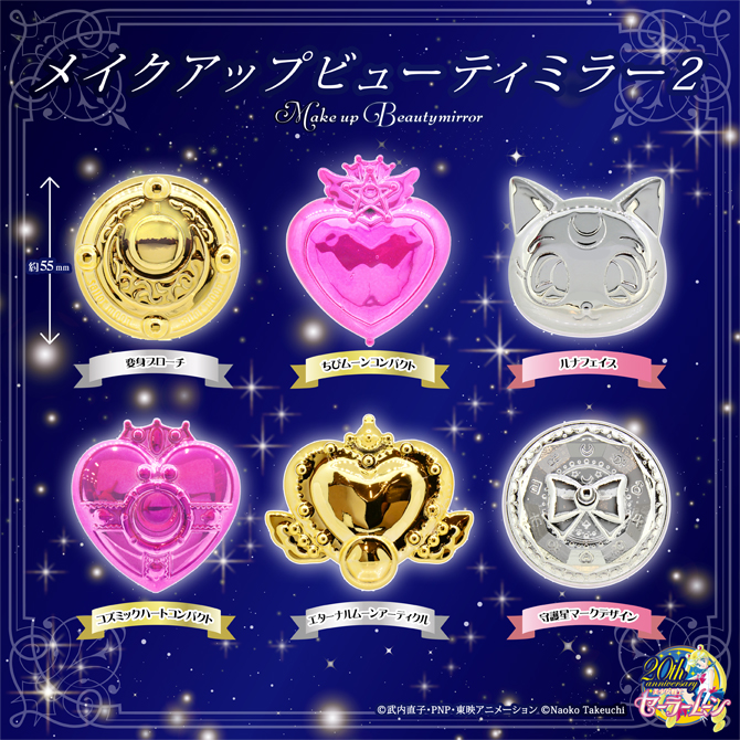 Jest to drugi zestaw lusterek z błyszczącą metalizowaną powłoką. W zestawie będą wzory: Henshin Brooch, Chibi Moon Compact, głowa Luny, Cosmic Heart Compact, Eternal Moon Article oraz wzór z symbolami planet. Wysokość to 55-60 mm. Lusterka pojawią się