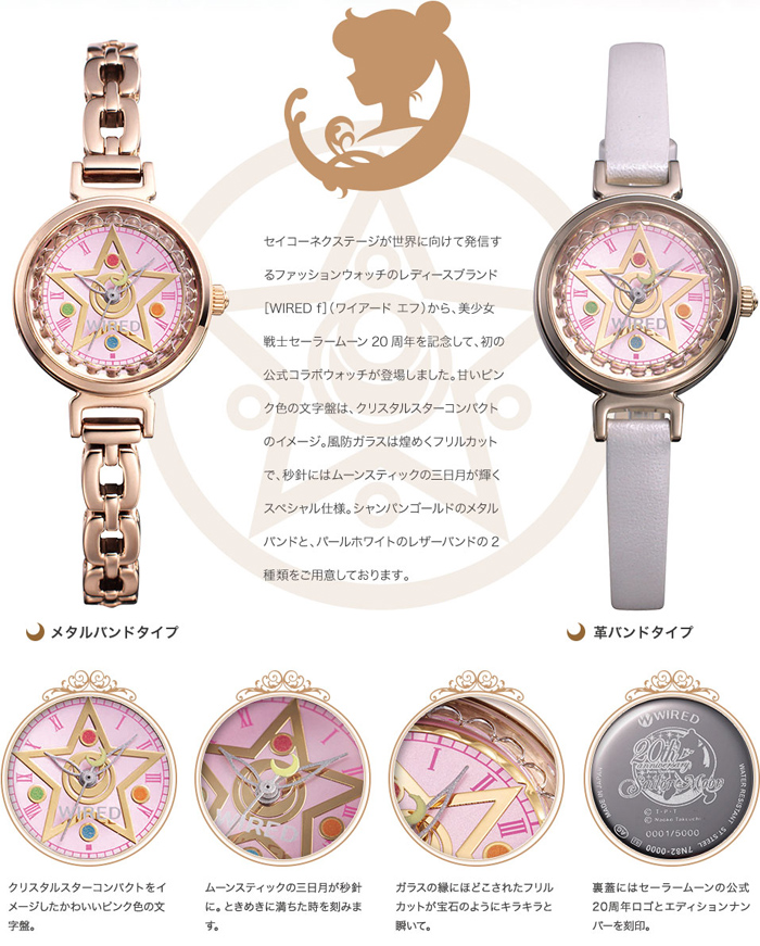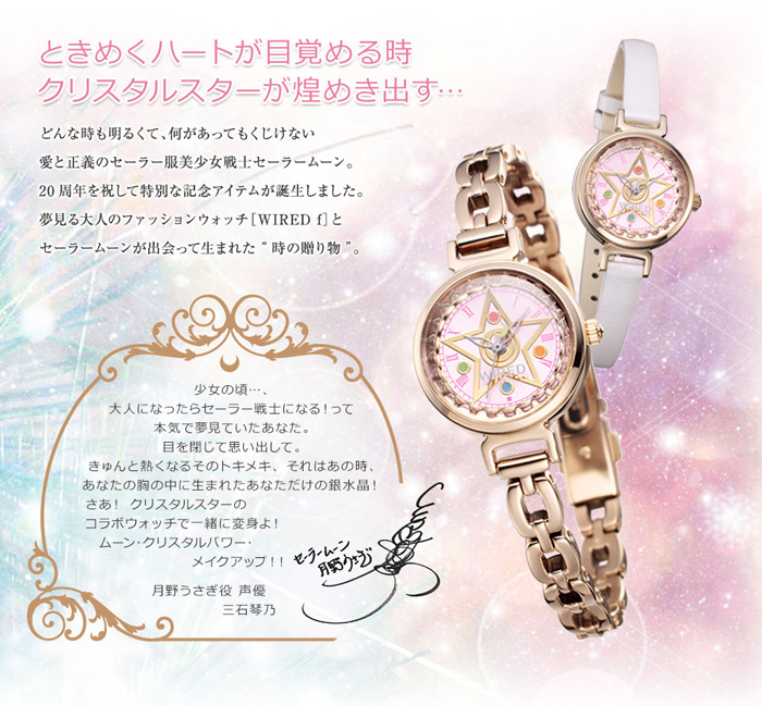 We współpracy z firmą WIRED f, która jest częścią marki Seiko, powstanie zegarek z motywem broszki Crystal Star na tarczy zegarka. Do wyboru mamy pasek skórzany (13,5 -17 cm) lub metalowy ze stali nierdzewnej w rozmiarach S (13,5 cm), M (15,5 cm) i L
