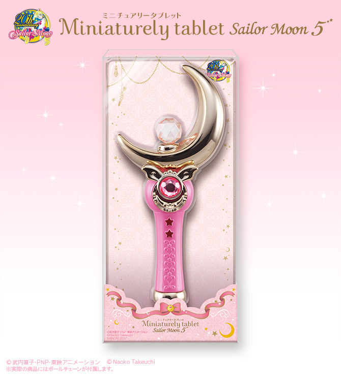 W piątym zestawie pojawią się opakowania na cukierki w postaci długopisu, pałeczki i berła. Do uzbierania są Hensou Pen, Moon Stick oraz Cutie Moon Rod. W przypadku pałeczki i berła cukierki można wysypać po przekręceniu rączki, a w przypadku długopisu trzeba zdjąć końcówkę z kryształem. Miniaturely Tablet są pomalowane perłowe farbą i ozdobione cyrkoniami. Dzisiaj rozpoczyna się przedsprzedaż na zestaw zawierający 6 sztuk, który kosztuje 5184 jeny (ok. 185 zł), a wysyłka nastąpi w marcu. W marcu pojawią się również w sklepach stacjonarnych w cenie 864 jenów (ok. 31 zł) za sztukę.