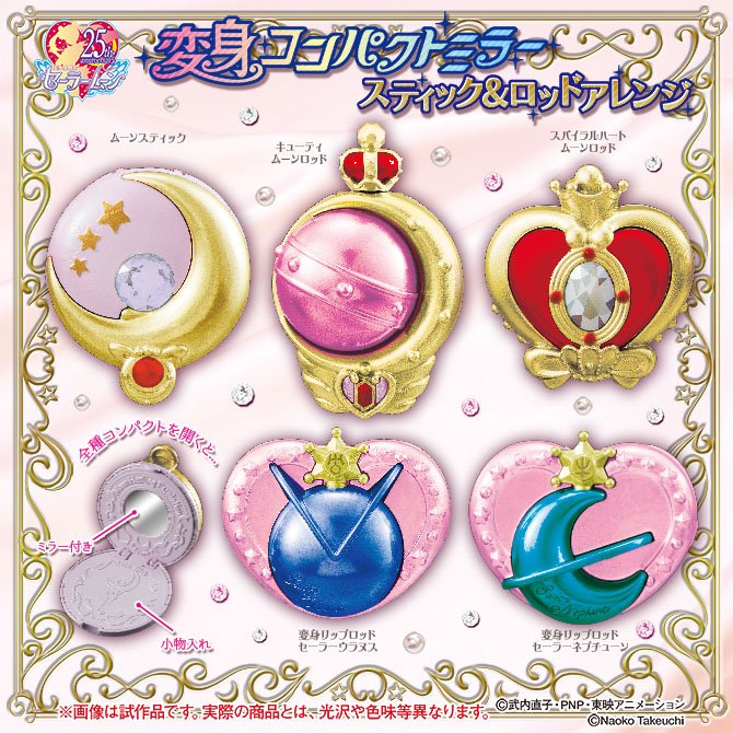 W automatach gashapon kolejne nowości. Będą to otwierane lusterka w formie pałeczek i bereł. Do uzbierania są: Moon Stick, Cutie Moon Rod, Spiral Heart Moon Rod oraz Henshin Lip Rody Uranus i Neptune. Lusterka mają długość około 59 mm i są grube na około