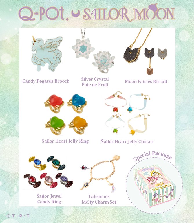 Dzisiaj ogłoszono kolejne nowe akcesoria od Q-pot, a także menu Q-pot cafe. Sprzedaż i otwarcie kawiarni rozpocznie się 30 czerwca, czyli w urodziny Usagi i Chibiusy. Brelok i naszyjnik Sweet Crisis Moon Macaron, naszyjnik Stallion Reve oraz naszyjnik