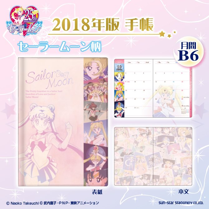 Zapowiedziano terminarze na przyszły rok. Do wyboru są dwa wzory: Sailor Moon i Icon. Każdy ma format B6, 96 stron i winylową okładkę. Obejmują okres od października 2017 do grudnia 2018. Przedsprzedaż rozpoczyna się dzisiaj, a wysyłka nastąpi w lipcu,