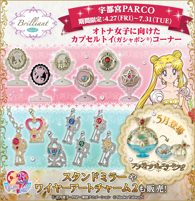 Stoisko Brilliant Capsule pojawi się od 27 kwietnia w Utsunomiya PARCO. Na stoisku pojawi się wiele zabawek gashapon Sailor Moon, a od maja pojawi się w przedsprzedaży drugi zestaw Antique Jewelry Case. Stoisko będzie można odwiedzać do 31 sierpnia.