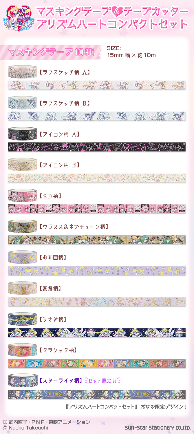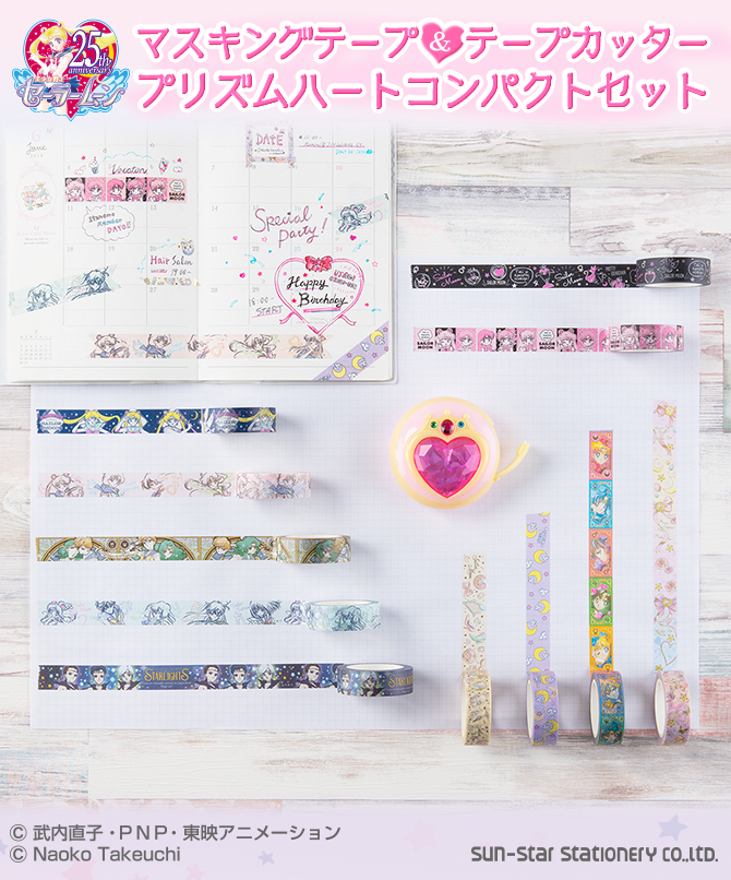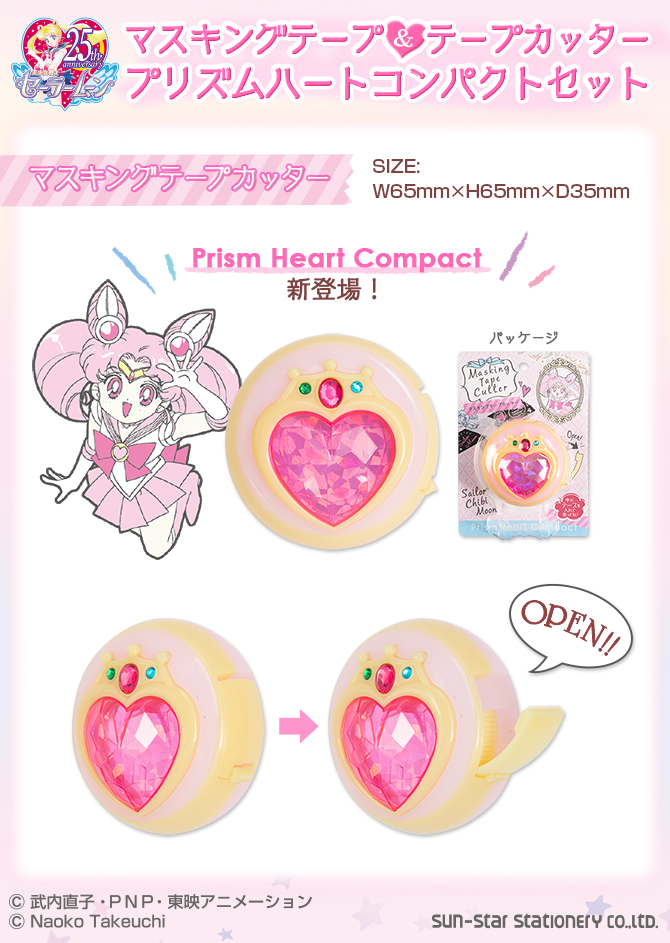 Zapowiedziano zestaw 11 ozdobnych taśm klejących i podajnika do taśm w kształcie broszki Sailor Chibi Moon Moon Prism Compact. Podajnik i taśmy na sztuki zostały już zapowiedziane w lutym, jednak w zestawie pojawi się dodatkowy wzór z Sailor Starlights.