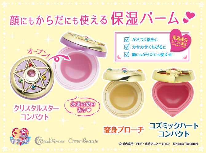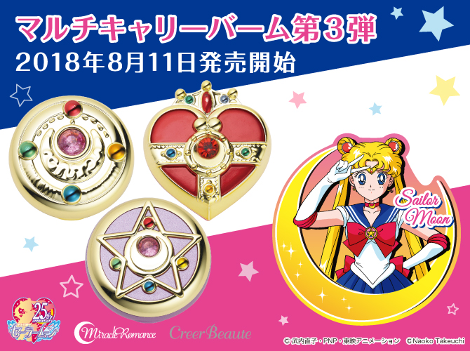 Trzecia odsłona balsamów ochronnych. Do wyboru są opakowania w kształcie trzech broszek Sailor Moon: Henshin Brooch, Crystal Star Compact oraz Cosmic Heart Compact. Każdy z balsamów ma inny kolor. Oprócz składników ochronnych takich jak