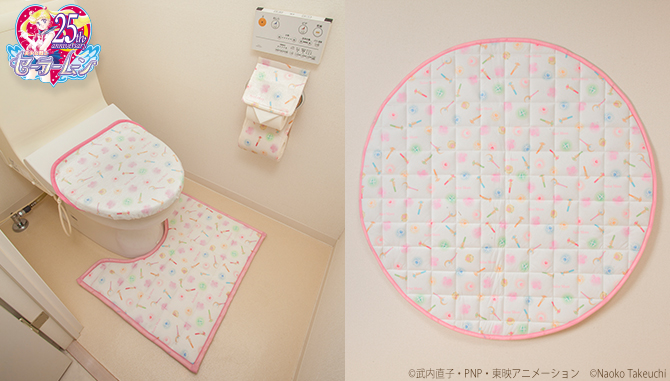 W sprzedaży pojawi się okrągły dywanik o średnicy 120 cm i zestaw do toalety zawierający pokrowiec na deskę sedesową, dywanik przed sedes i uchwyt na papier toaletowy. Akcesoria mają nadruk w magiczne przedmioty. Dywanik kosztuje 6480 jenów (ok. 212 zł),