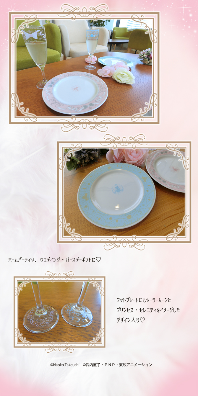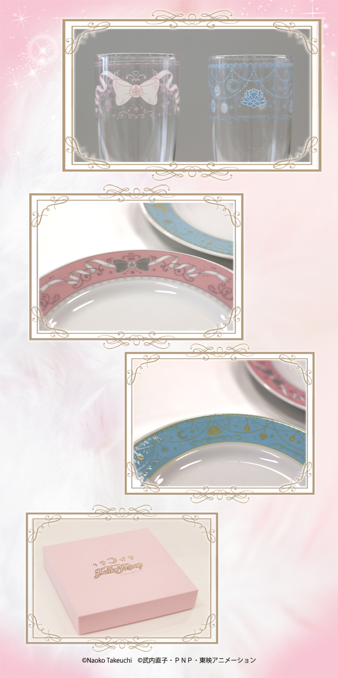 W oficjalnym sklepie pojawią się zestawy dwóch kieliszków i dwóch talerzy. W każdym zestawie jedna sztuka jest ozdobiona na różowo, a druga na niebiesko. Zestawy są zapakowane w ozdobne pudełka. Kieliszki mają wymiary 19,8 x 5,9 cm, talerze mają średnicę