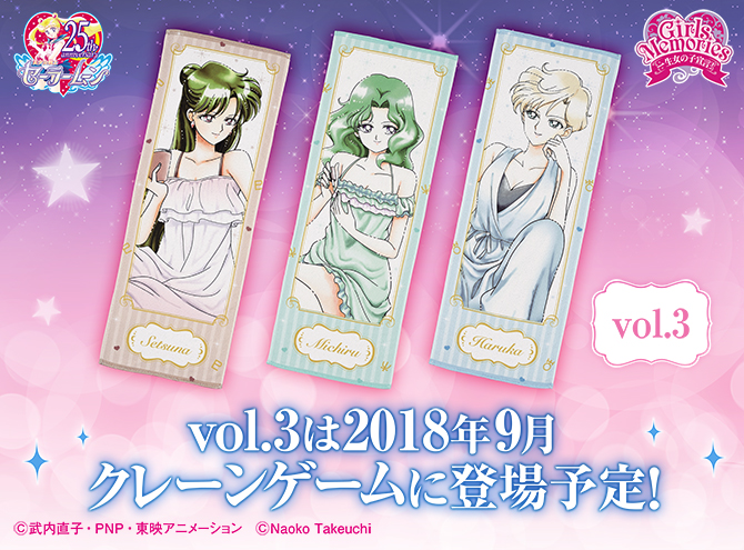 Zapowiedziano 10 ręczników ze wszystkimi wojowniczkami, które pojawią się w automatach "łapa szczęścia". W pierwszym zestawie są Usagi, Chibiusa i Hotaru, w drugim Rei, Mako, Minako i Ami, a w trzecim Setsuna, Michiru i Haruka. Pierwsze dwa