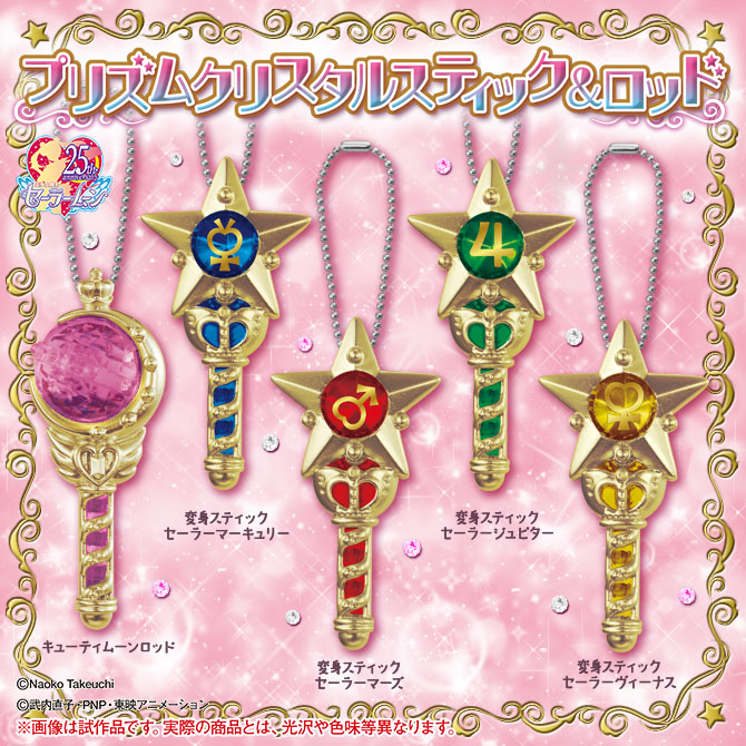 W automatach gashapon pojawią się breloki w postaci pałeczek do przemiany inner senshi oraz berła Cutie Moon Rod. Berło ma około 64 mm, a pałeczki około 60 mm. W automatach pojawią się we wrześniu. Cena za kapsułkę to 300 jenów (ok. 10 zł).