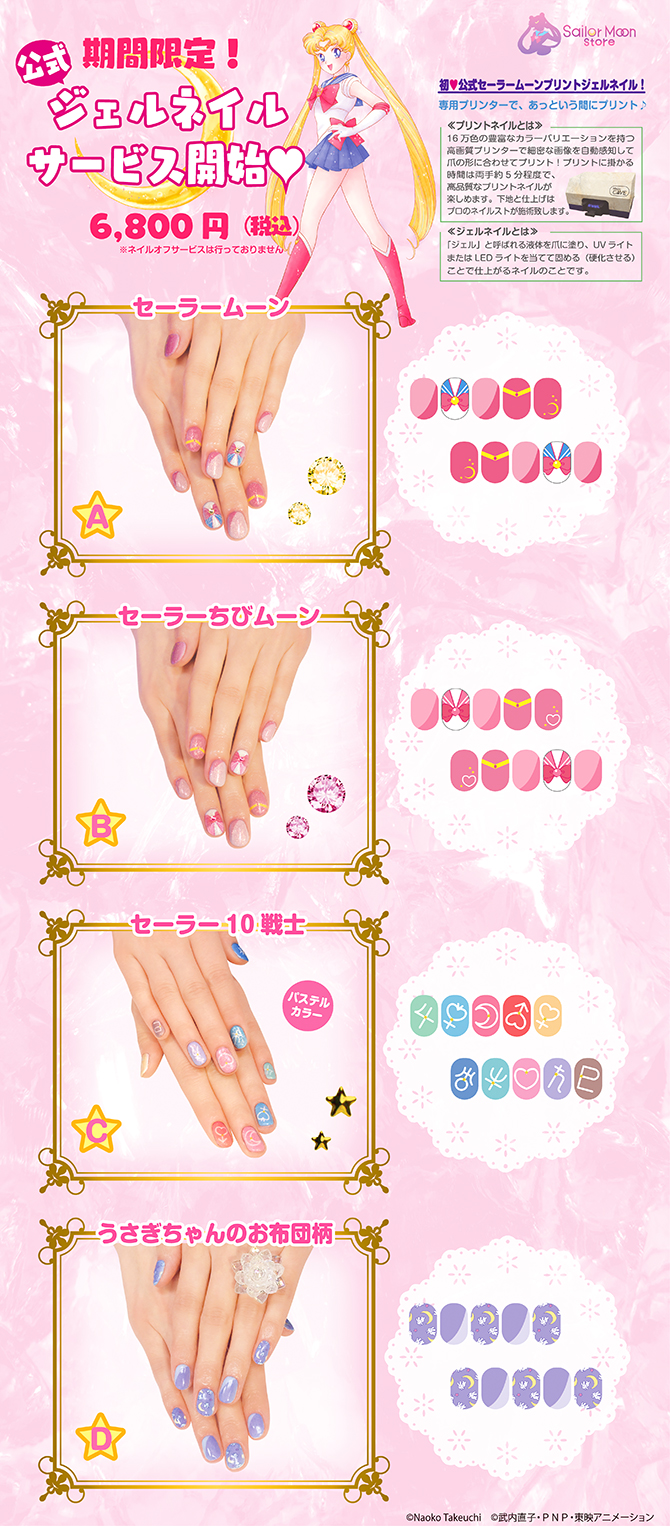 Od 1 do 24 czerwca w oficjalnym sklepie dostępna będzie usługa wykonania żelowych paznokci. Do wyboru będą 4 wzory: Sailor Moon, Sailor Chibi Moon, 10 wojowniczek oraz pościel Usagi. Przez pierwsze dwa dni usługa dostępna będzie jedynie dla członków fanklubu.