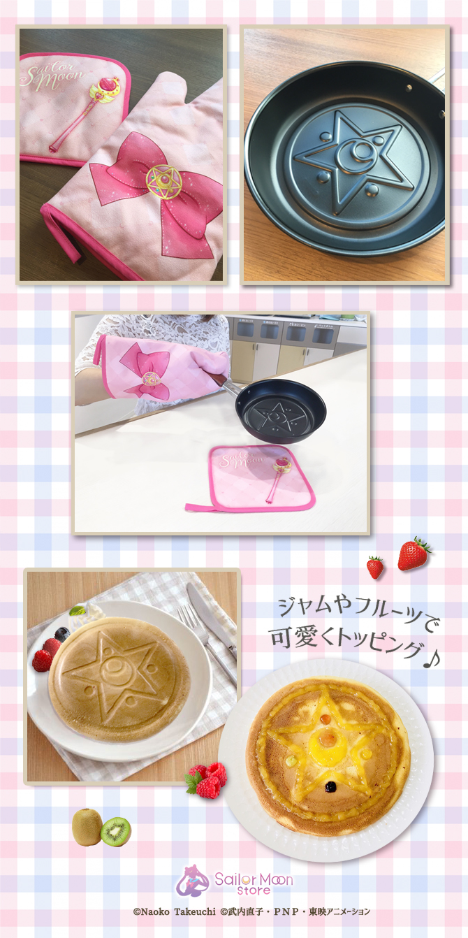W Sailor Moon Store pojawią się patelnia z wzorem Crystal Star, rękawica kuchenna z kokardą i broszką Crystal Star oraz podkładka pod gorące naczynia z Cutie Moon Rod. Naleśniki z patelni będą miały wzór Crystal Star, a sama patelnia ma wymiary 16,5 x