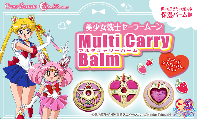Pojawi się już czwarta z kolei odsłona Multi Carry Balm. W tej serii ponownie pojawią się Crystal Star Compact i Cosmic Heart Compact, ale w nowych wersjach kolorystycznych. Nowością jest Prism Heart Compact Sailor Chibi Moon. Balsamy zawierają składniki