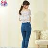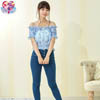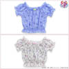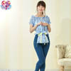 Zestaw biustonosz z szortami - dostępny tylko w kolorze niebieskim; 5720 jenów (ok. 202 zł) za zestaw. Top z odsłoniętymi ramionami i marszczeniami - pod szyją mała kokardka; 4400 jenów