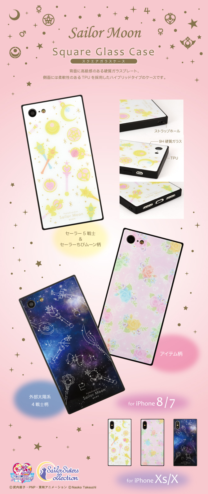 Zapowiedziano szklane etui na iPhony 7/8/X/XS. Do wyboru są 3 wzory: inner senshi i Chibi Moon, magiczne przedmioty oraz outer senshi. Przedsprzedaż rozpoczyna się dzisiaj, a wysyłka nastąpi we wrześniu. Cena za sztukę to 3542 jeny (ok. 123 zł).