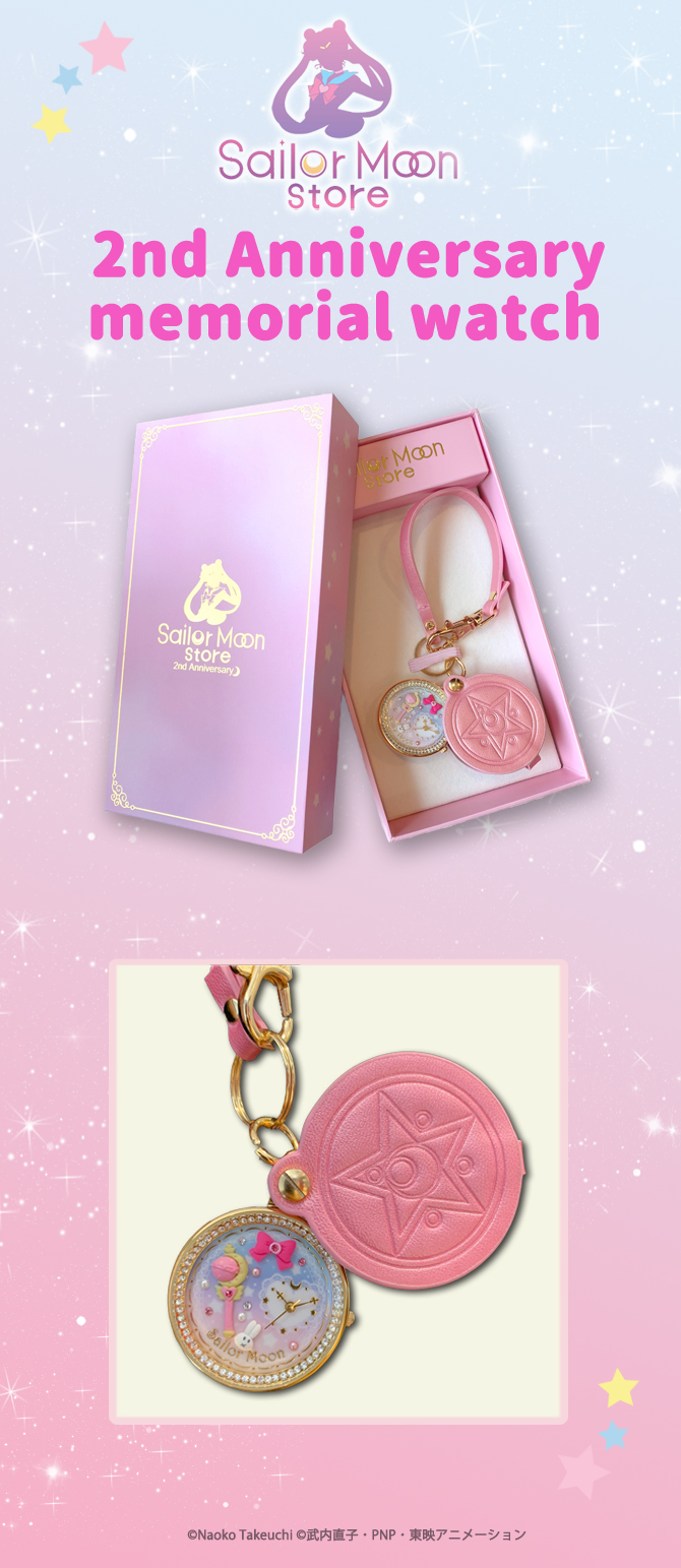Z okazji drugiej rocznicy otwarcia sklepu Sailor Moon Store pojawią się obwoluta i naklejka z Sailor Moon. Obwoluta ma wymiary 310 x 220 mm i ozdobiona jest złotą połyskującą folią. Naklejka ma wymiary 124 x 91 mm. Oba artykuły można kupić w cenie 540