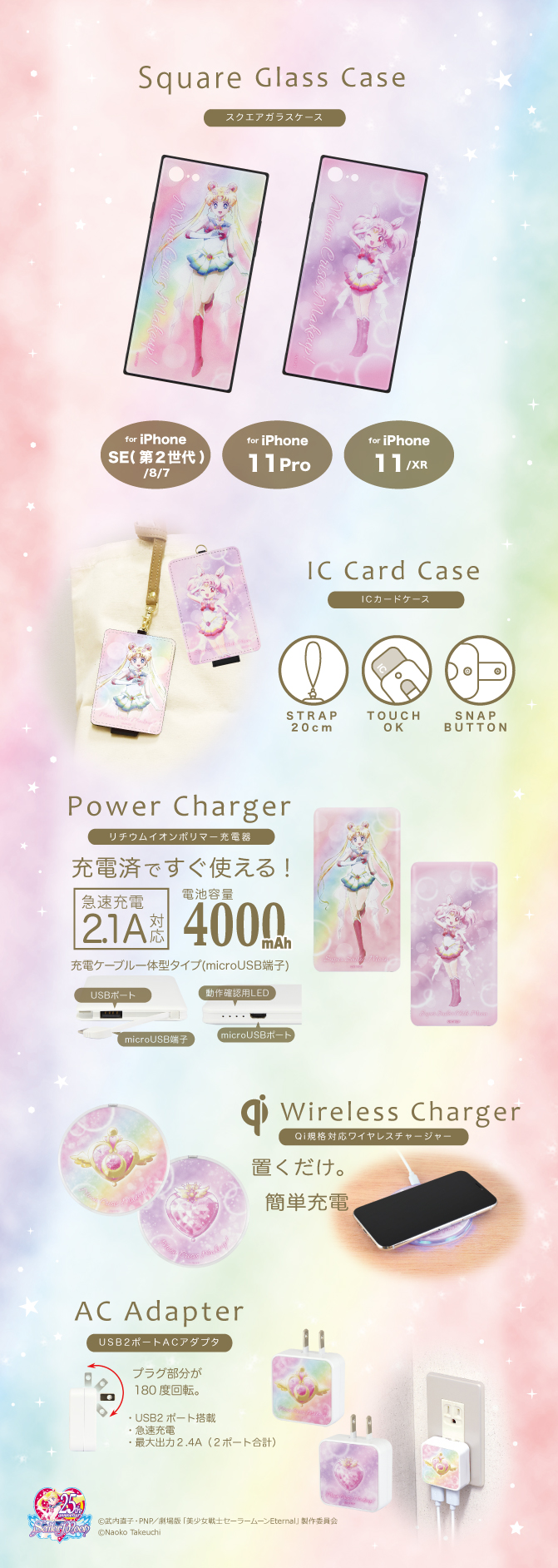 mają wzory w Super Sailor Moon oraz Super Sailor Chibi Moon, a ładowarki z broszkami Crisis Moon Compact oraz Chibi Moon Compact. Przedsprzedaż rozpoczęła się 11 czerwca, a wysyłka nastąpi w sierpniu.