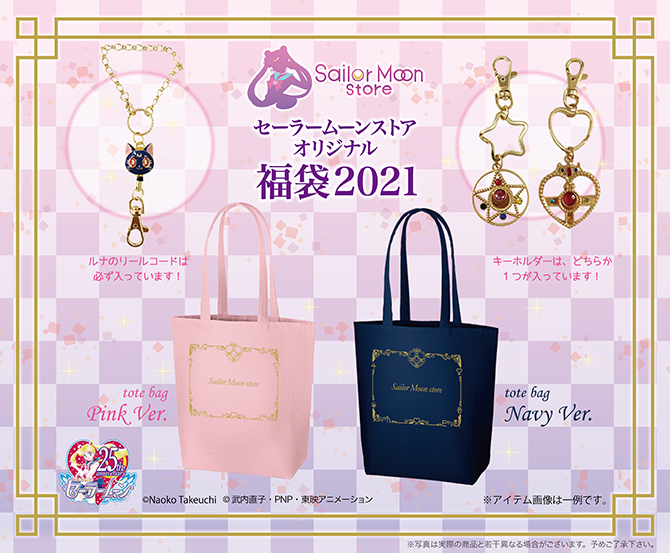 Star lub Cosmic Heart. W torbie znajdą się również nowości, a cała zawartość torby będzie warta od 12 000 do 15 000 jenów. Sprzedawane będą w Sailor Moon Store i Sailor Moon Store Petit od 2 lutego 2021. Torba będzie kosztować 6600