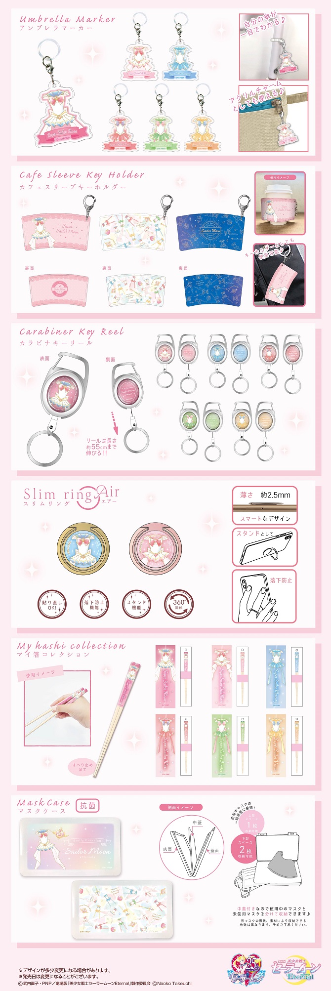 Różne drobne gadżety z grafiką Sailor Moon Eternal. Sprzedaż przewidziana na styczeń/luty 2021.