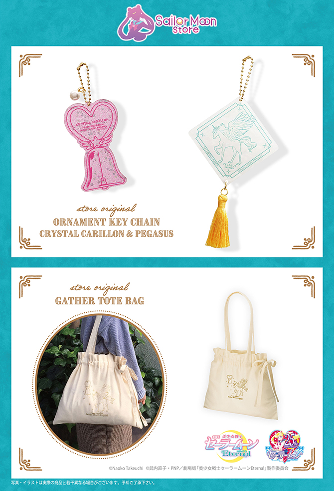Do filmu Sailor Moon Eternal zapowiedziano zawieszki do toreb w formie maskotek Super Sailor Moon i Super Sailor Chibi Moon. Maskotki mają wysokość 10 cm, a zawieszki ozdobione są dodatkowo kokardą, półksiężycem i kryształkiem. Od stycznia 2021 będą sprzedawane