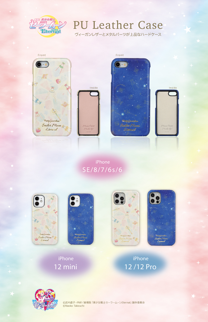 PU Leather Case - etui na iPhony ze sztucznej wegańskiej skóry z lekkim połyskiem; po wewnętrznej stronie wytłoczony jest napis Moon Crisis Make Up; dostępne wersje na modele iPhone 12mini/12/12Pro oraz IPhone SE drugiej generacji,