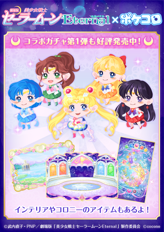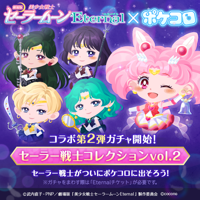 Drugiego grudnia rozpocznie się druga część współpracy z Pokecolo. W aplikacji pojawią się outer senshi i Sailor Chibi Moon oraz dodatki z nimi związane.