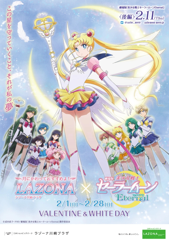 Nastąpi współpraca z centrum handlowym Lazona Kawasaki Plaza, która będzie powiązana z drugim filmem Eternal. Centrum handlowe będzie udekorowane grafikami Sailor Moon Eternal, pojawi się też kampania. W kampanii będzie rozdawana obwoluta dla klientów,