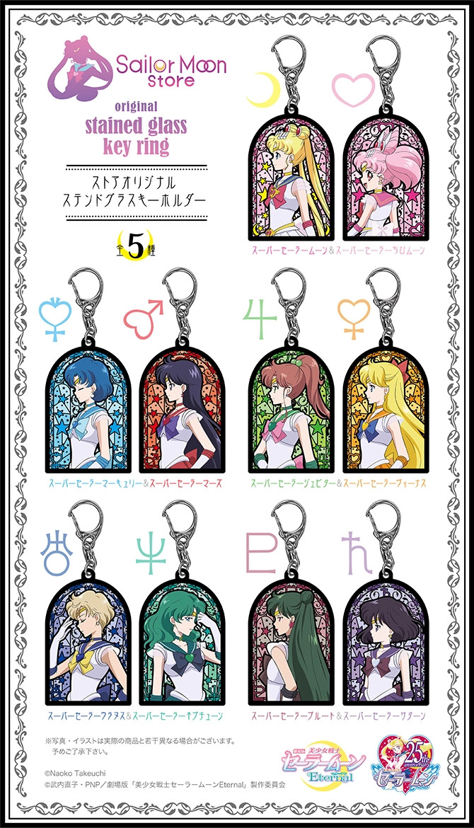 W Sailor Moon Store, Sailor Moon Store Petit oraz Pretty Guardians pojawią się breloki z poszczególnymi wojowniczkami na witrażowym tle. Do wyboru jest 5 zestawów: Moon & Chibi Moon, Mercury & Mars, Jupiter & Venus, Uranus & Neptune oraz