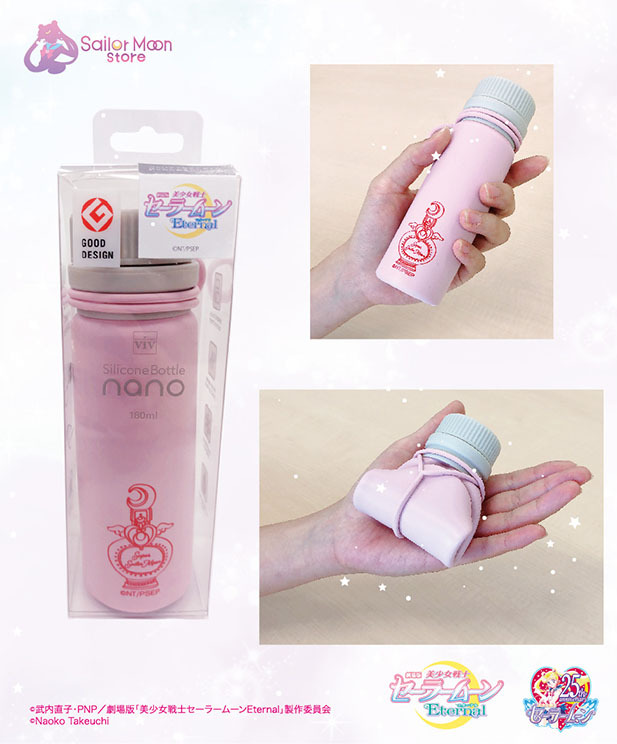 W Sailor Moon Store będą sprzedawane silikonowa butelka i aluminiowa słomka. Butelka ma pojemność 160 ml, a po wypiciu zawartości można ją zwinąć, żeby zajmowała mniej miejsca. Słomka ma w komplecie ściągany woreczek do przechowywania oraz szczoteczkę