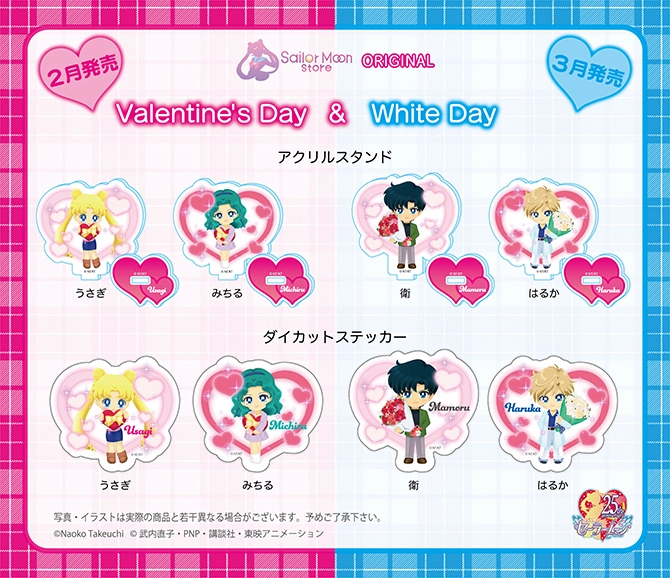 W Sailor Moon Store pojawią się gadżety z okazji Walentynek i Białego Dnia (w Japonii w Walentynki panie obdarowują panów, a w Biały Dzień, który jest miesiąc później, na odwrót). Będą to akrylowe ozdoby i naklejki z Usagi, Michiru, Mamoru i Haruką. Akrylowe
