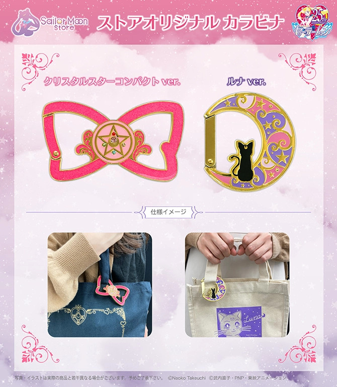 W Sailor Moon Store i Pretty Guardians pojawią się ozdobne zawieszki w formie dużych karabińczyków. Do wyboru są dwa wzory, Crystal Star i Luna. Oba ozdobione są kolorowymi kryształkami. Cena za sztukę to 1980 jenów (ok. 69 zł). Data rozpoczęcia sprzedaży nie została podana, więc albo zostanie podana później, albo zawieszki są już dostępne do kupienia.