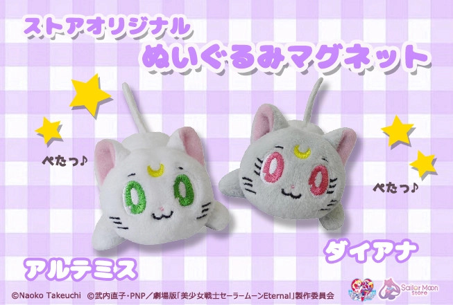 Jeszcze w październiku w Sailor Moon Store i Pretty Guardians pojawią się pluszaki Artemisa i Diany z magnesami w łapkach. Cena za sztukę to 825 jenów (ok. 29 zł).