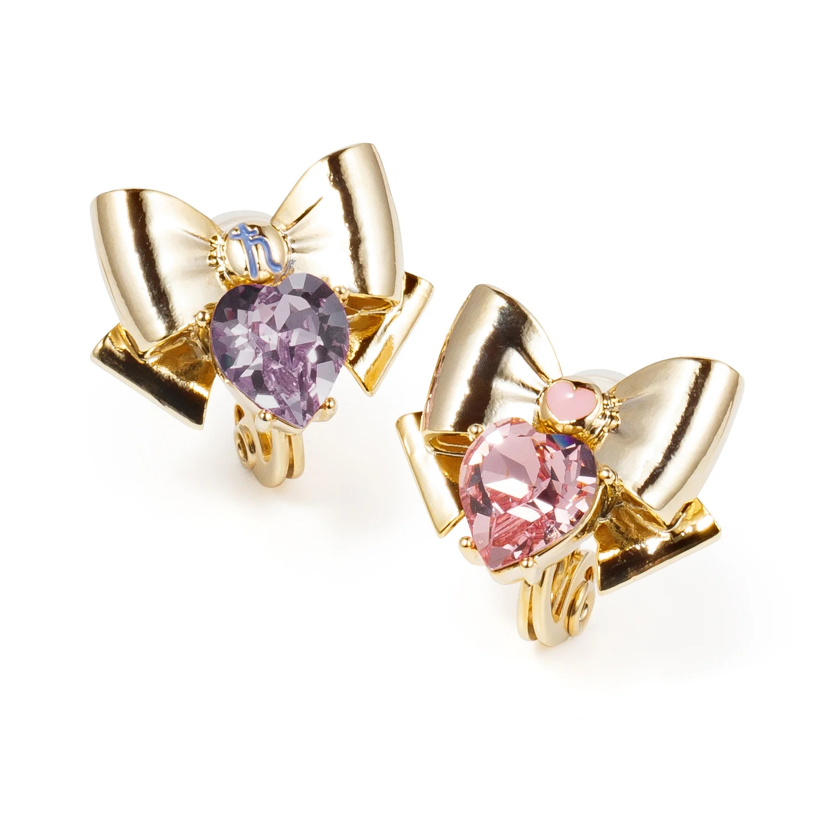 Kolczyki - jeden kolczyk jest z broszką Sailor Saturn, a drugi z broszką Sailor Chibi Moon; oba kolczyki ozdobione są kryształkami w kształcie serca; do wyboru są wkręty lub klipsy; 5500 jenów (ok. 144 zł) za parę.
