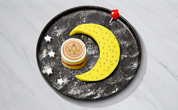 - Moon Prism Power Make Up Cake! - ciastko inspirowane sceną przemiany Sailor Moon, w zestawie sos owocowy do polania; 1900 jenów (ok. 46 zł).