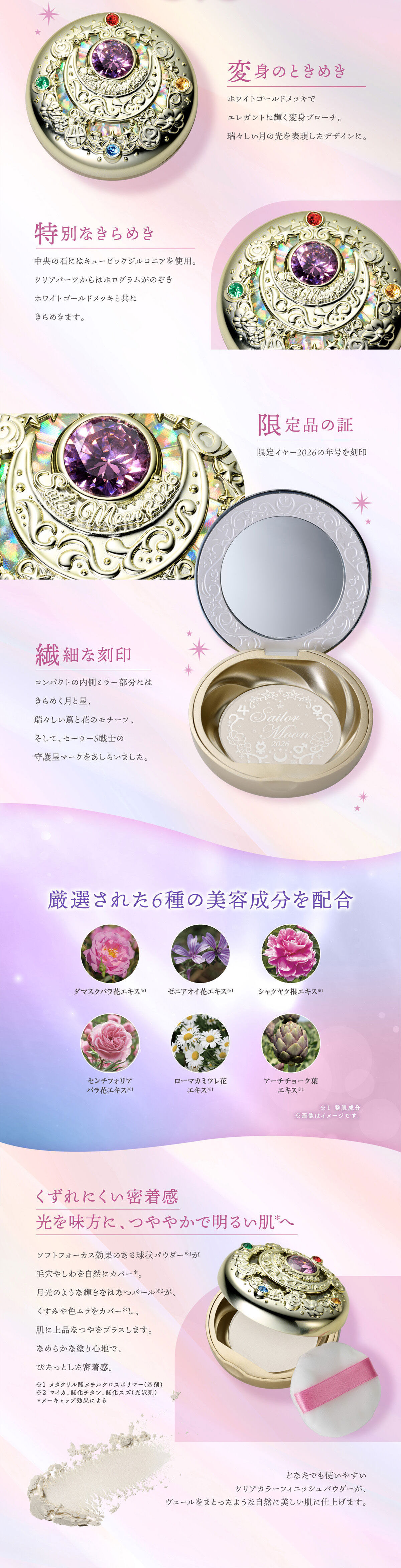 Zapowiedziano nowy Shining Moon Powder w wersji na 2026 rok. Wieczko jest inspirowane broszką Henshin Brooch i jest ozdobione kolorowymi cyrkoniami. Na środku pojawia się napis Sailor Moon 2026, a wewnątrz znajduje się lusterko. Na pudrze