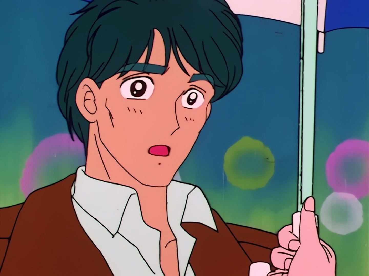 wpada na dziewczynę. Oboje upadają na chodnik, a Usagi jest wściekła, że jej ubranie jest teraz całe przemoczone. Staje nad leżącym na chodniku Yuusuke i zamierza na niego nakrzyczeć. Amade zaczyna z przerażeniem krzyczeć, żeby go