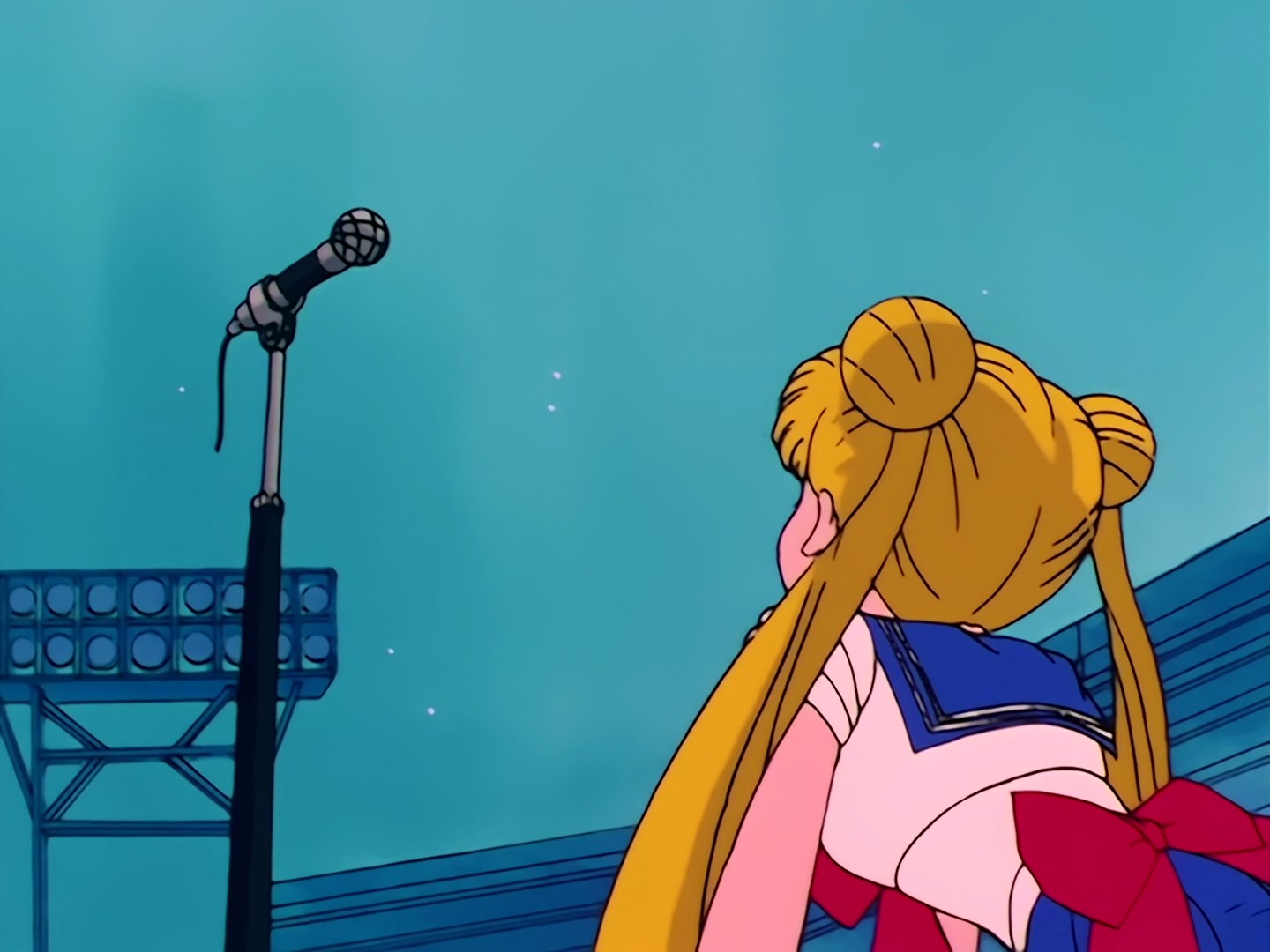 Usagi i Luna stoją przed drzwiami klubu, w którym daje swoje koncerty Yuusuke, a Usagi zamierza się dostać do środka. Luna wytyka jej, że nie wpuszczą jej do środka, bo nie jest pełnoletnia. Usagi jednak wyjmuje Hensou Pen i przemienia