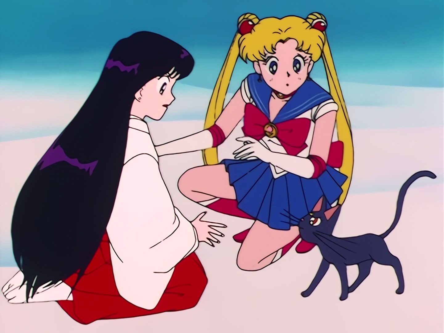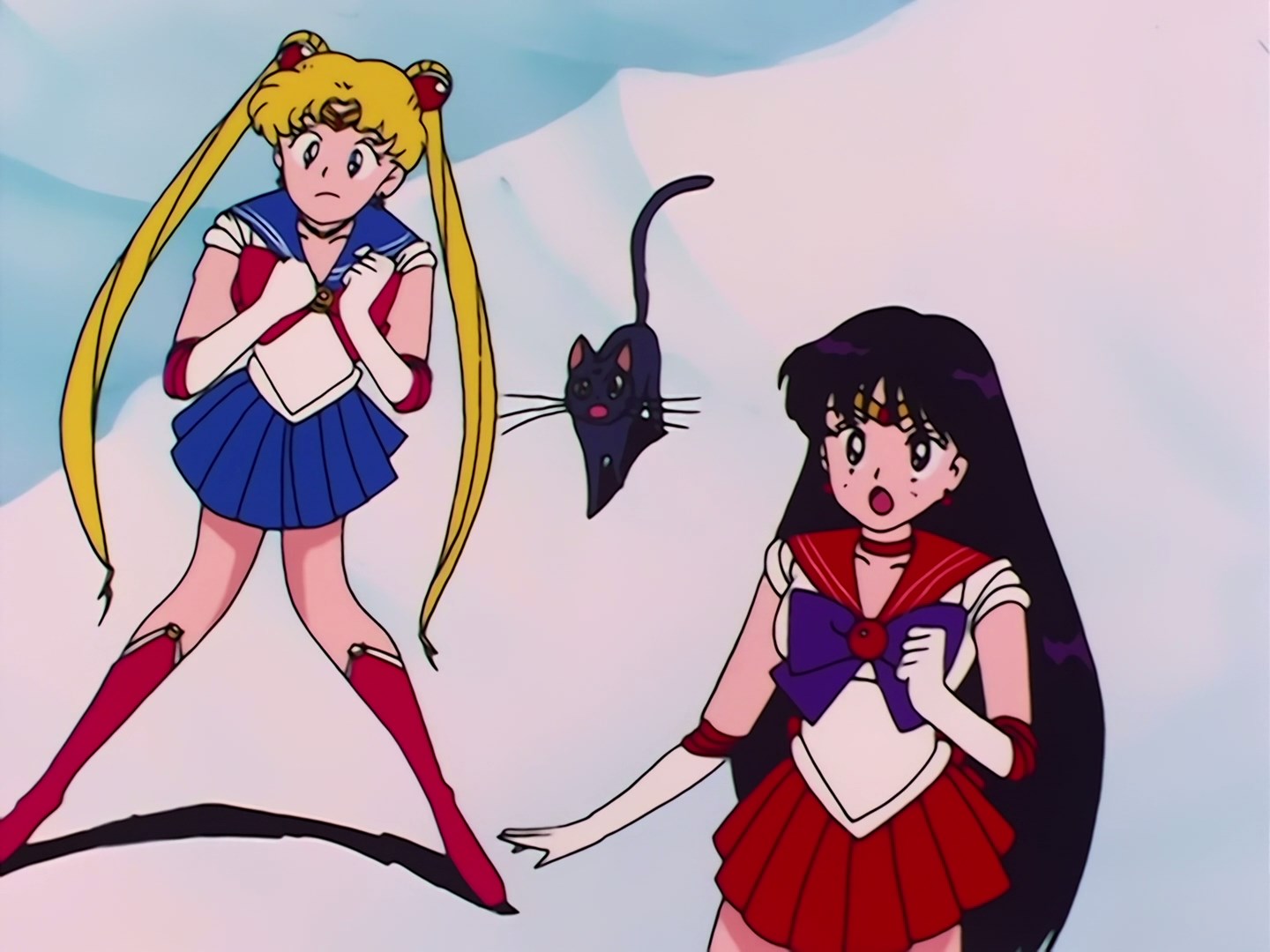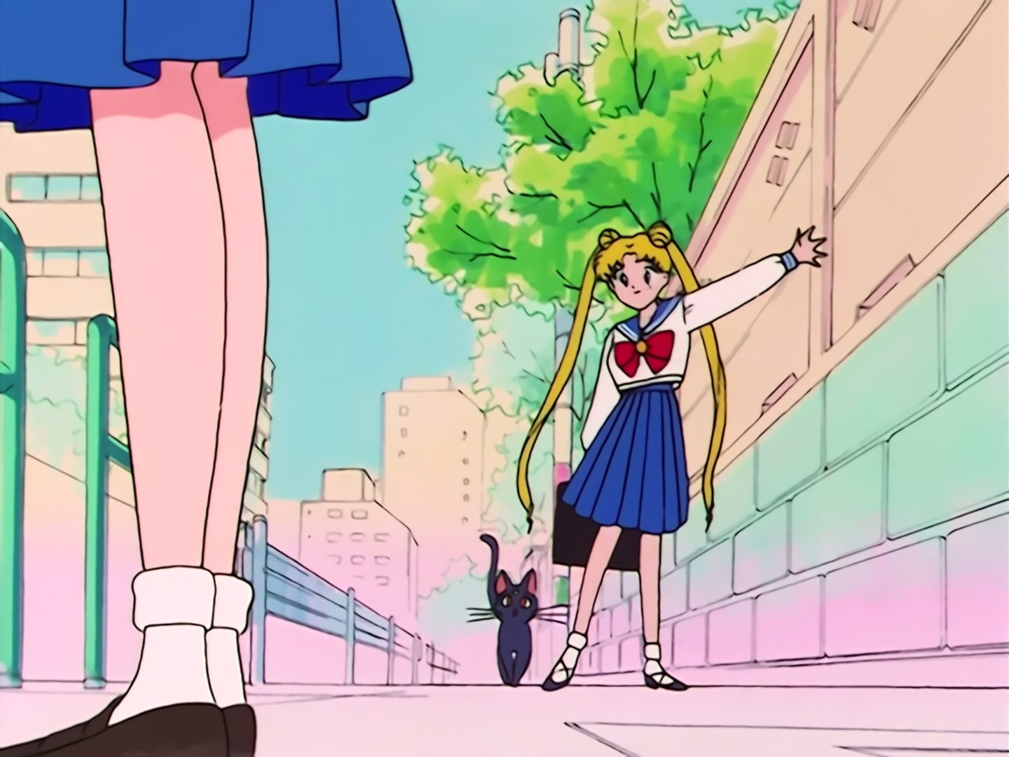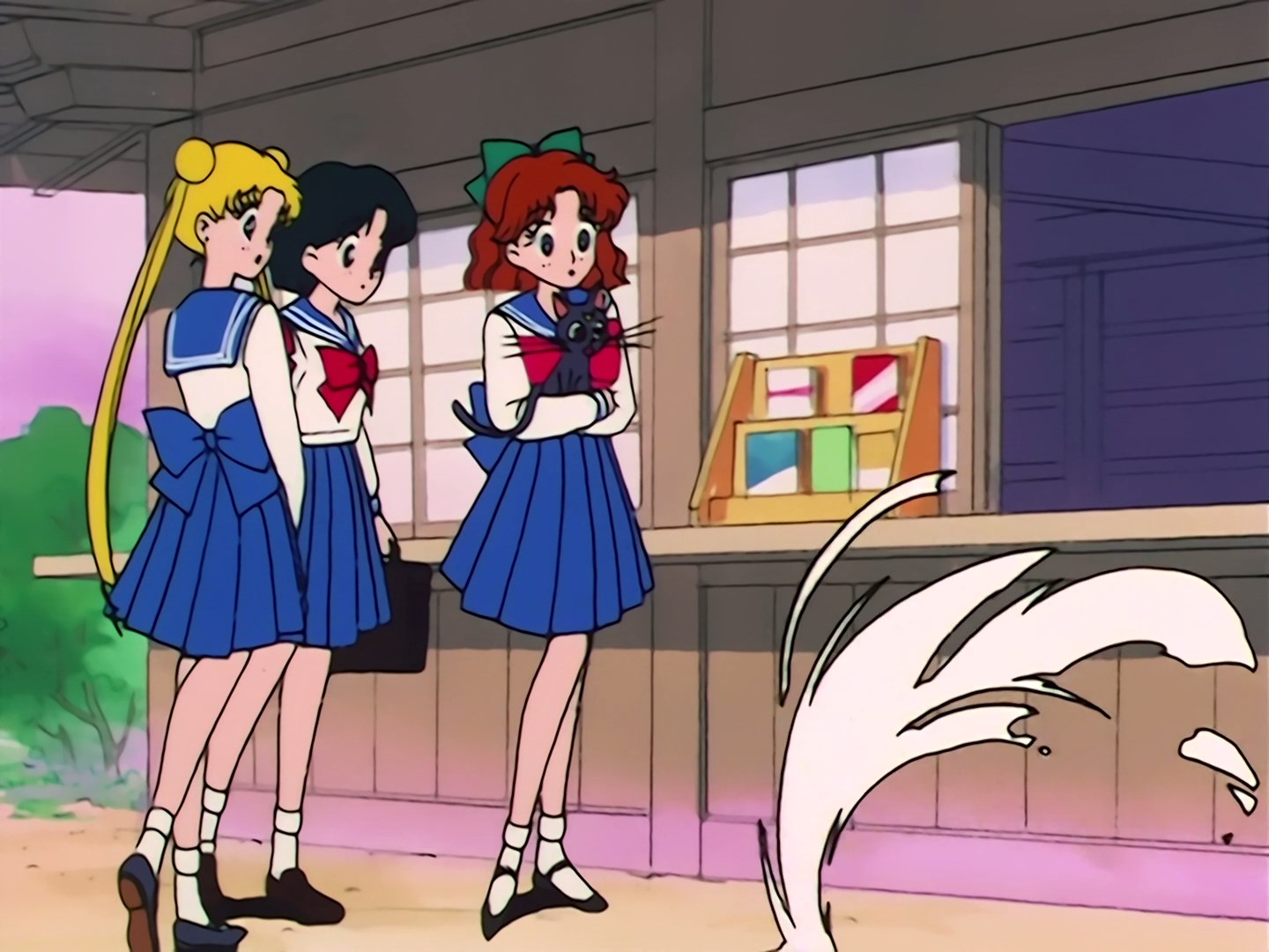 Usagi idzie ulicą razem z Luną, kiedy obok nich przejeżdżają radiowozy. Dziewczyna zastanawia się, co mogło się stać. Nagle przed sobą spostrzega Ami i macha do niej ręką. Ami wita się z Usagi i przytula Lunę. Dziewczyna stoi