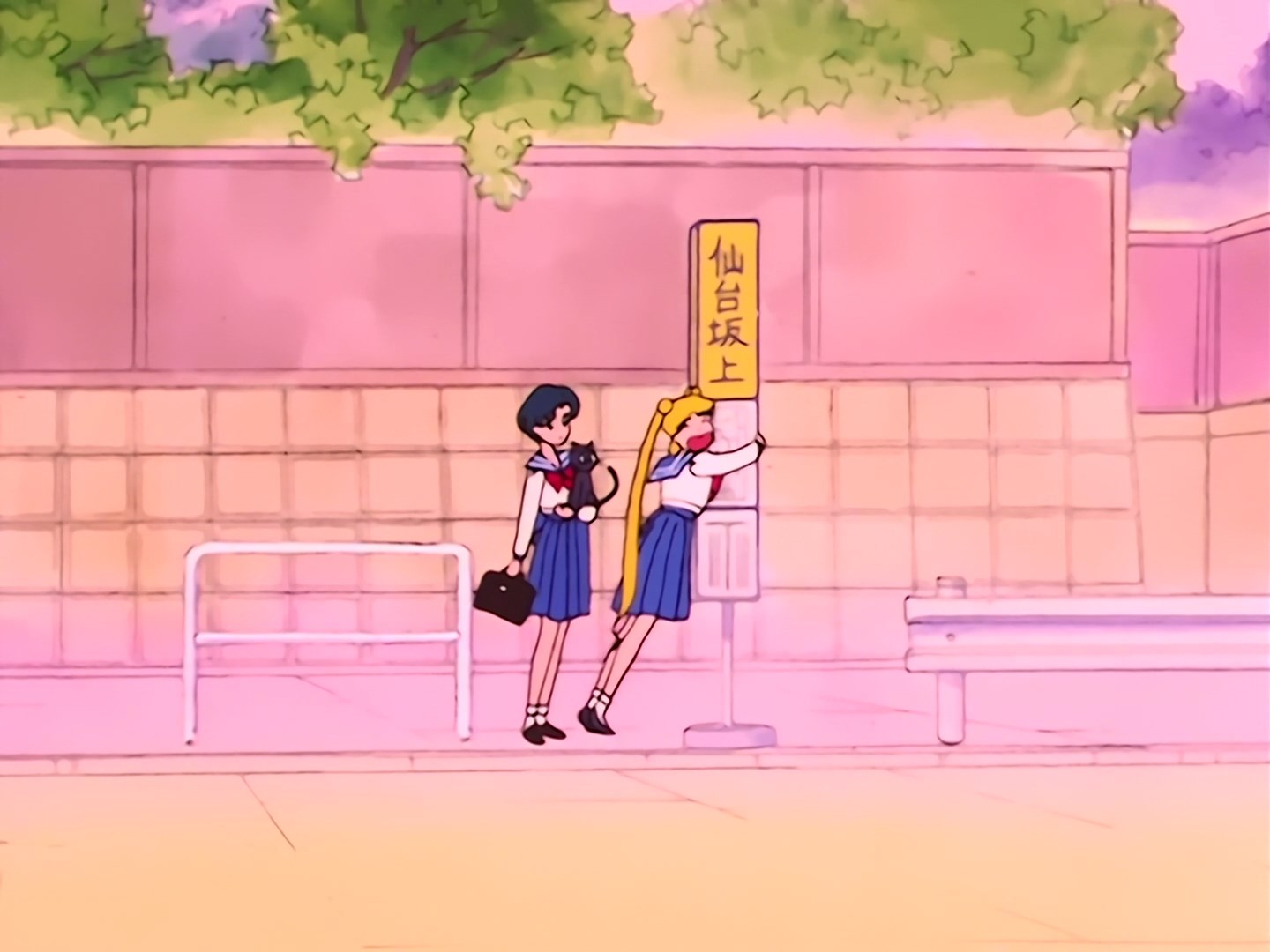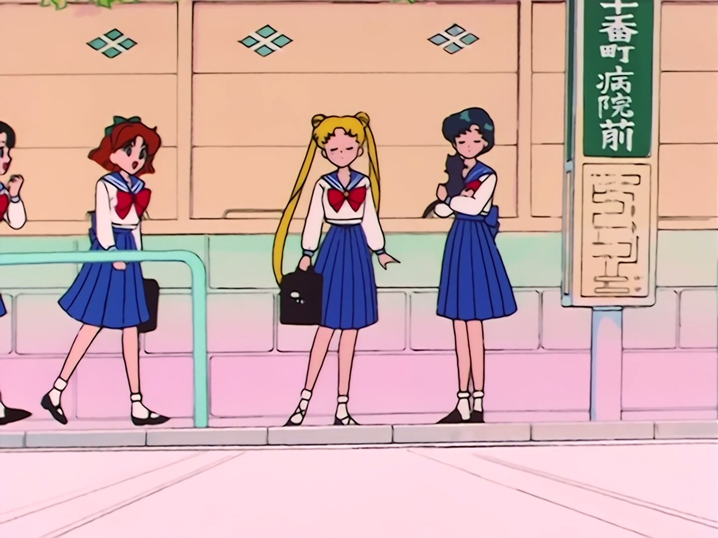 na przystanku autobusowym, więc Usagi zastanawia się dokąd będzie jechać. Ami odpowiada, że jedzie do szkoły, w której będzie mieć zajęcia dodatkowe. Usagi dziwi się, że szkoła, do której wybiera się jej koleżanka jest tak daleko,