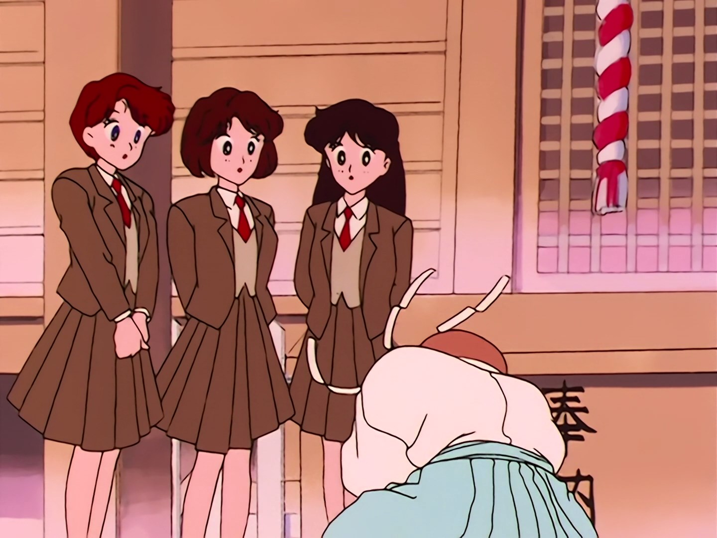 przyszły również Usagi, Naru i jeszcze jedna koleżanka. Teraz to je zaczepia starszy kapłan. Do całej grupki pochodzi kapłanka Rei i strofuje swojego dziadka za jego zachowanie. Usagi jest zachwycona kapłanką i jej urodą i stwierdza,