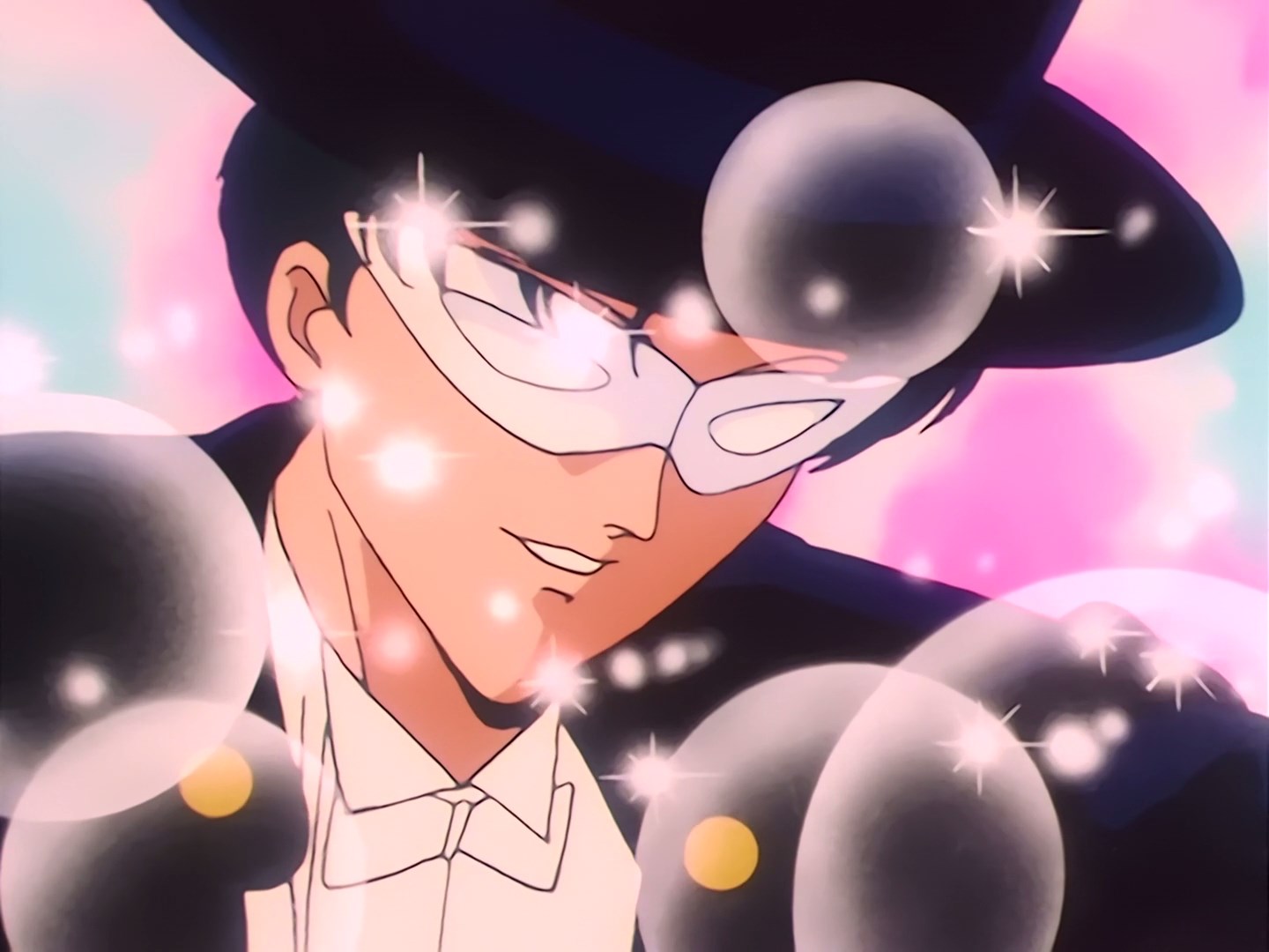 Sailor Moon rzuca się w ramiona Ami i obie cieszą się, że udało im się opanować sytuację. W międzyczasie Tuxedo Kamen żegna się z nimi i znika. Sailor Mars komentuje, że Tuxedo Kamen jest przystojny, a Sailor Moon pyta się jej