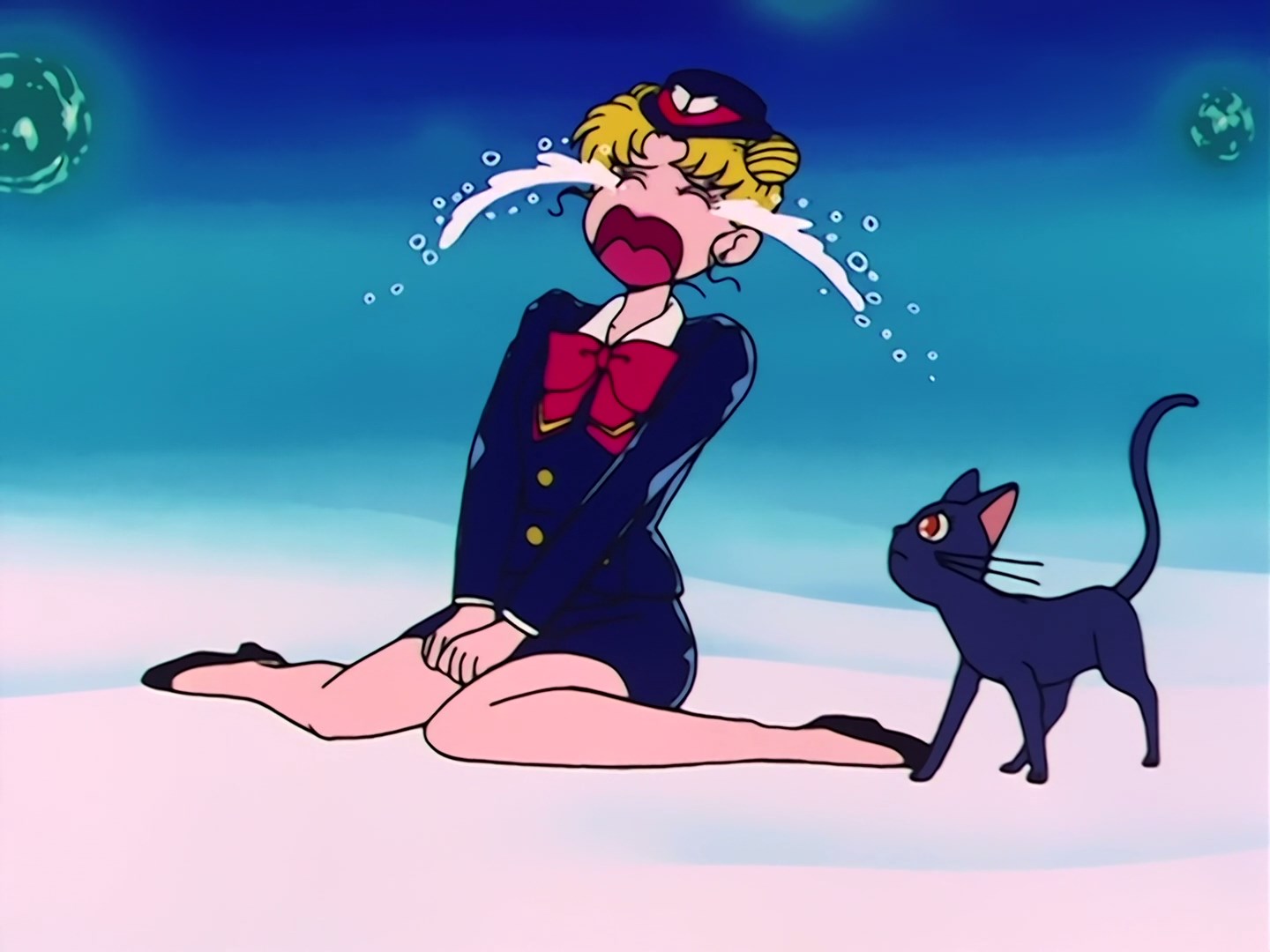 Kiedy Usagi z Luną są już na zewnątrz, kotka nakazuje dziewczynie, aby skontaktowała się z Ami, bo według niej w Świątyni może dziać się coś niepokojącego. Usagi ma co do tego wątpliwości, ale Luna wykrzykuje, że to poważna sprawa,
