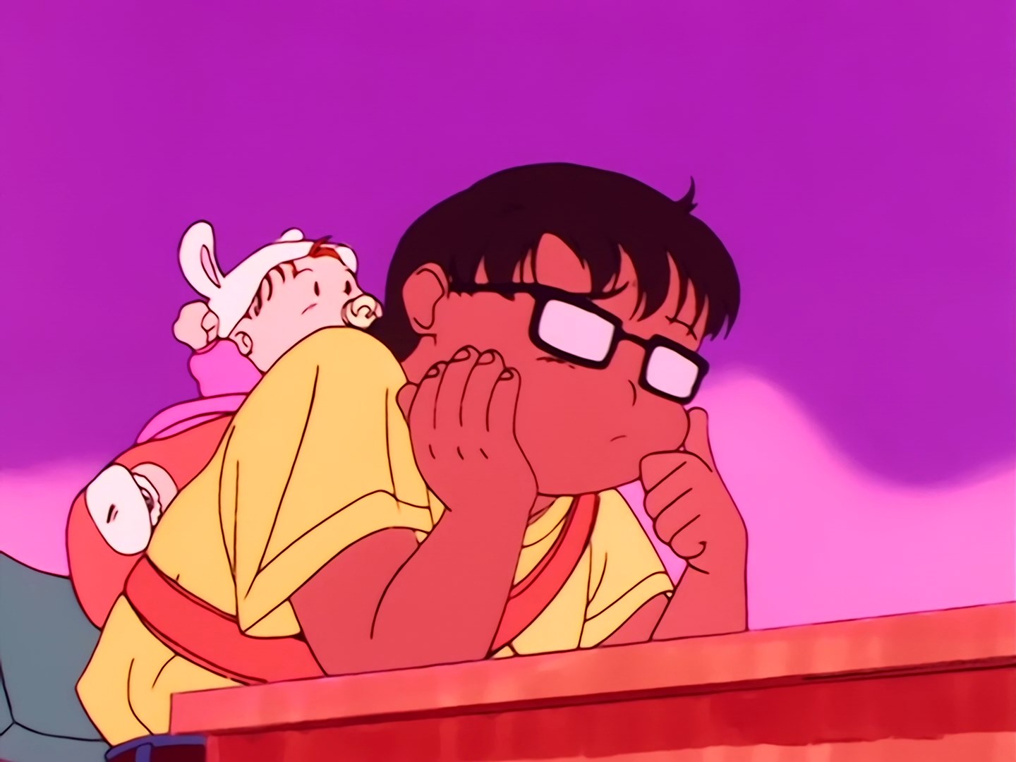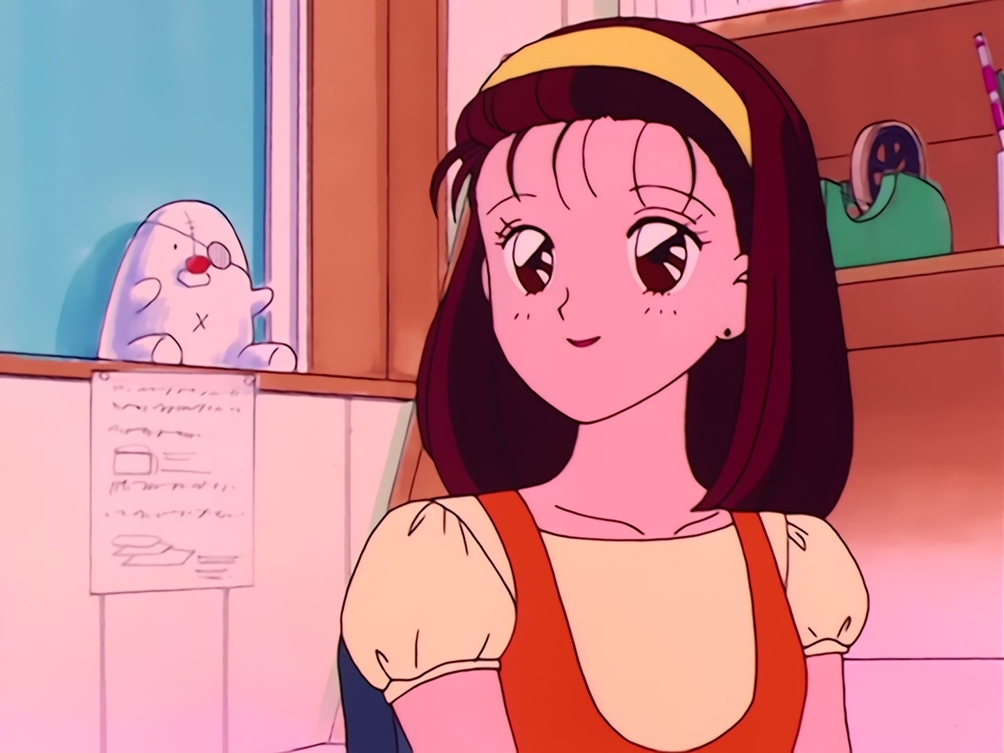 Usagi siedzi w swoim pokoju i ogląda w telewizji reklamę anime Sailor V. Mówi, że fajnie byłoby, gdyby zrobili anime o Sailor Moon. Luna w duchu mówi, że jeśli ktoś zrobiłby tak głupie anime to musiałaby je zobaczyć.