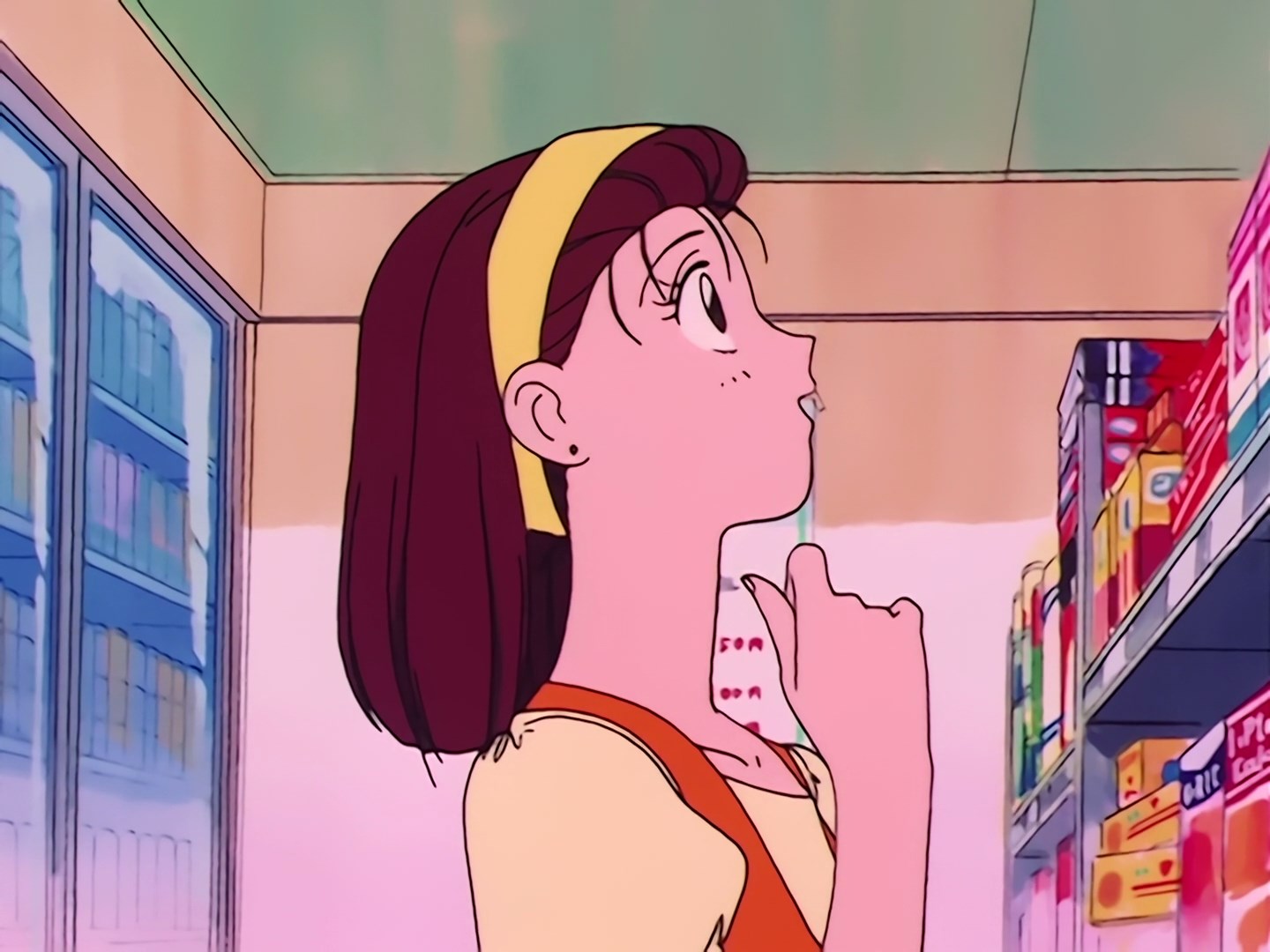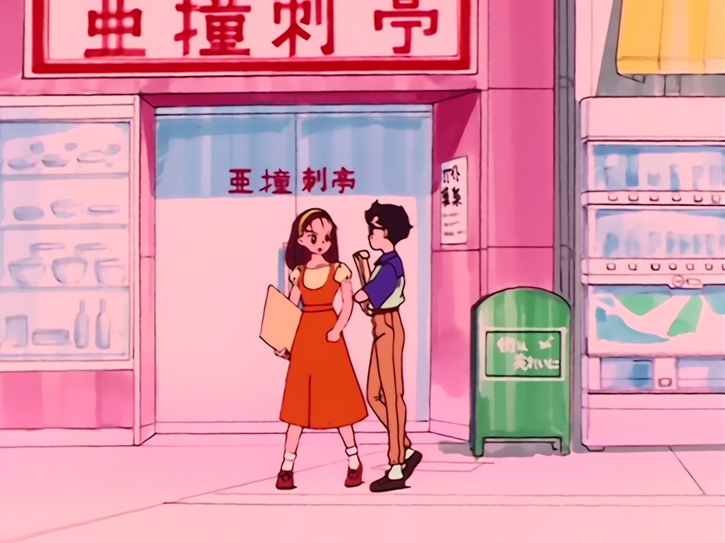 koleżanka strofuje ją, że nie powinna tak na siebie patrzeć. Kazuko Proponuję wyścig do studia i obie biegną dalej chodnikiem, ale Hiromi gubi teczkę. W miejscu, gdzie stały wcześniej obie dziewczyny znajduje się księgarnia, z której