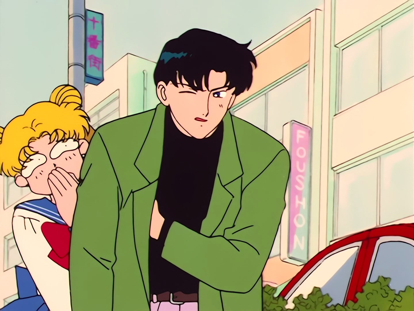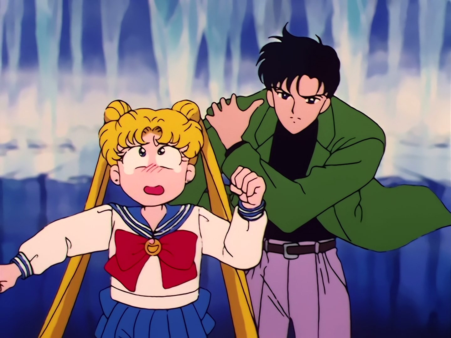 stwierdza, że Mamoru nie powinien chodzić ranny po ulicach. On odpowiada jej w oschły sposób, że to nie jej sprawa i że powinna wracać do domu. Usagi wykrzykuje za nim, że nie musi być niemiły i idzie za nim dalej. Kiedy Mamoru jest