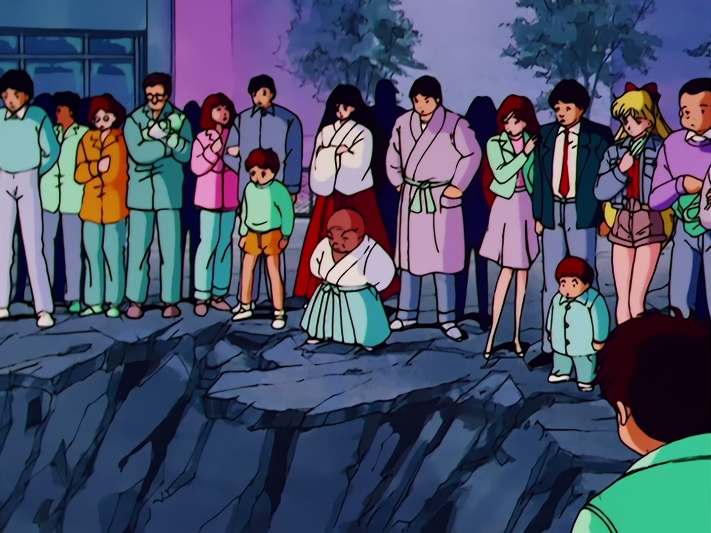 Dookoła krateru, który powstał na pustym parkingu, zbierają się ludzie. Sytuacji przyglądają się również Luna i Artemis. Luna stwierdza, że ma co do tego złe przeczucia. Wśród gapiów są również Usagi, Ami, Rei, Mako oraz Minako.