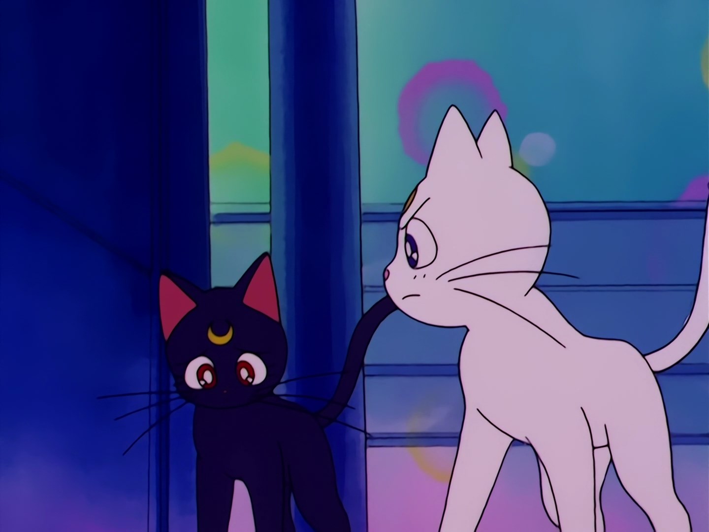 w kartę, która wyparowuje i po chwili znika. Sailor Moon pyta się Artemisa czy nic mu nie jest, a do rozmowy wtrącają się Ail i An, którzy pokazują się na hologramie na niebie. Wojowniczka pyta się kim są, a oni przedstawiają się jako