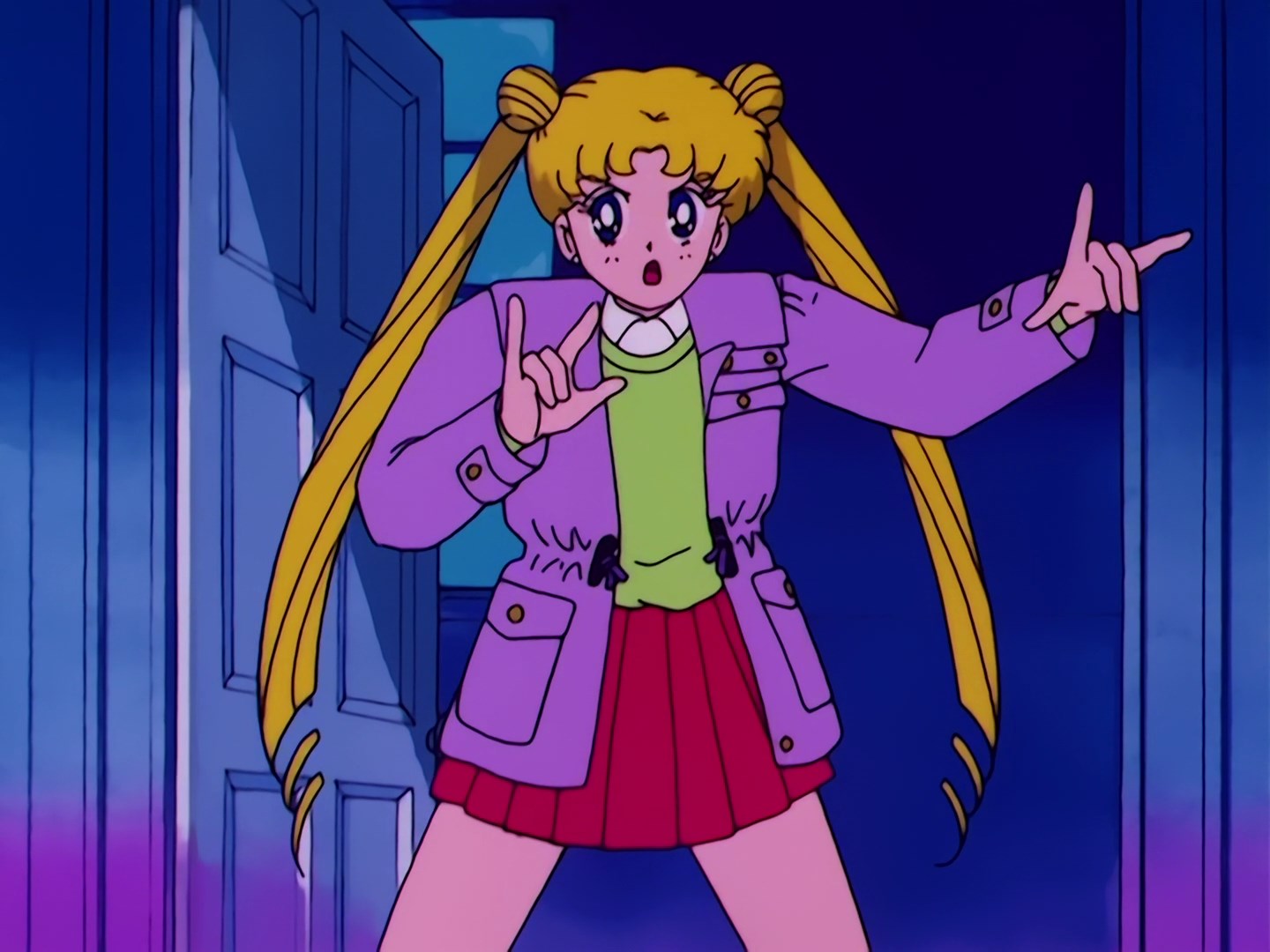 Usagi wybiega z domu z kanapką w zębach i spieszy się do szkoły. Zaraz za bramą swojego domu przewraca się, a jej brat wychodzi za nią i przypomina jej o zabraniu tornistra. Kiedy Usagi siedzi na chodniku płacząc, a jej brat zaczyna jej
