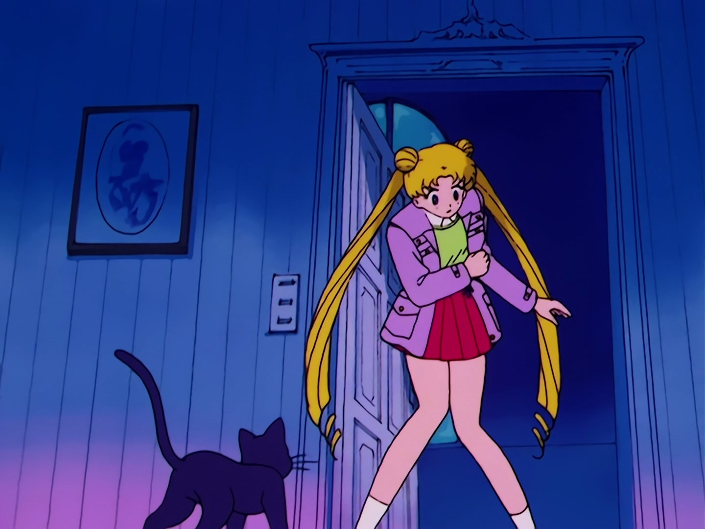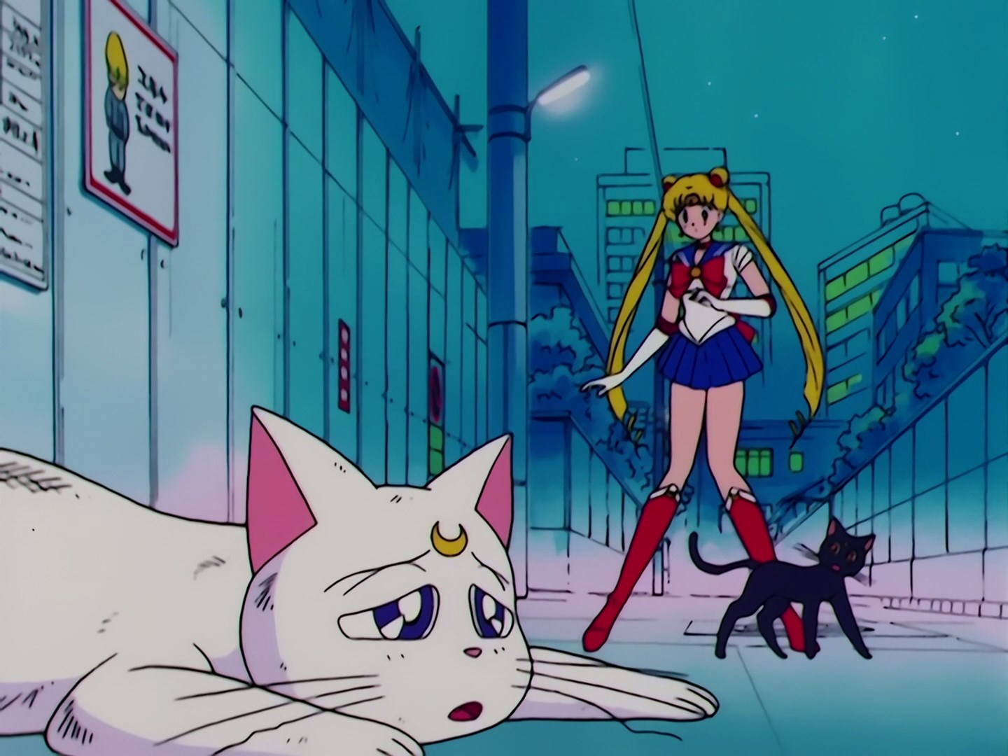 rozpoznaje Lunę. Kotka mówi jej, że powinna się przemienić w wojowniczkę, bo ludzie w mieście są w niebezpieczeństwie. Usagi wykonuje jej polecenie.
